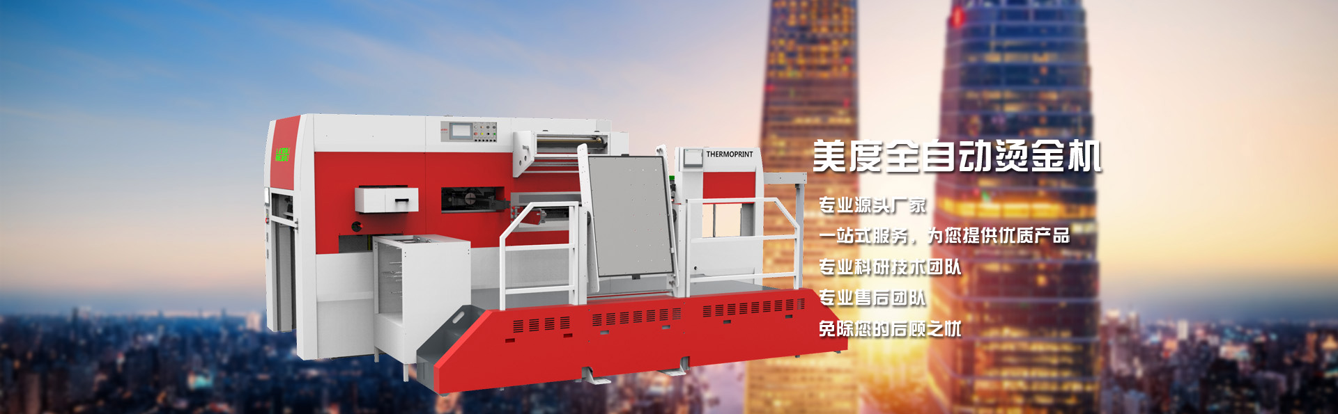 山東美度印刷設備有限公司是一家從事機械研究和制造的企業,主要產品包括全自動平壓平三縱燙金機、全自動平壓平三縱兩橫燙金機、全自動平壓平深壓紋模切機、全自動平壓平深壓紋燙金機、全自動平壓平模切機等系列產品。經過多年的發展,公司現已擁有多名的工業研發設計人員、經驗豐富的生產安裝人員及嚴謹認真的質量檢驗人員,從外購件檢驗、零部件加工、整機裝配、出廠檢驗等各個流程均有嚴格質量保證,從而保障了所生產設備的品質。